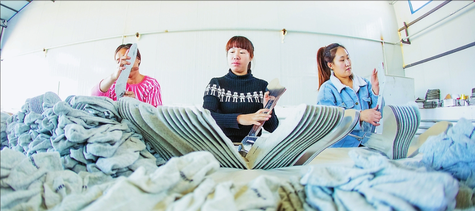 □本报记者刘心杨 孙吴县被誉为“中国汉麻之乡”,汉麻产业带动贫困户脱贫增收是孙吴县的产业扶贫特色。 日前,在孙吴县正阳山乡双山村,记者看到在国海汉麻发展有限公司的织袜车间、脱胶车间、打麻车间一片繁忙的加工景象。国海汉麻发展有限公司总经理宋卫国介绍,这个公司年生产袜子100万双,用工量在100人以上,大多数工人都来自于附近的村屯。为了帮助贫困户脱贫,雇佣工人时优先考虑贫困户,现在在工厂里打工的贫困户有50多人。以打麻车间工人为例,月工资保底3600元。 在打麻车间,记者看到了两条生产线,宋卫国对记者说,这两条生产线白天开一条,晚上开一条,两套工人轮番上岗。一条生产线用工14人。工人们告诉记者,在这里打工比外出打工赚得多,而且离家还近。 双山村村民张淑艳正在定型车间为加工好的汉麻袜子定型,手艺娴熟。她对记者说,她是今年8月份来到这里打工的,每个月的收入为家庭减轻了不少负担。“都55岁了,这个年纪想外出打工都没地方用,守家在地的在这打工挺好。”张淑艳对这份工作很满意。 国海汉麻发展有限公司除了在用工上助力贫困户脱贫,还吸纳了孙吴县正阳山乡高山满族村10台织袜机入股,企业每年给高山村2万元的分红,这笔分红最终受益的还是贫困户。 上图:村里就有好产业,年轻人也不再“往外跑”。 左图:汉麻进入车间生产线。 右图:排列整齐的亚麻制品。