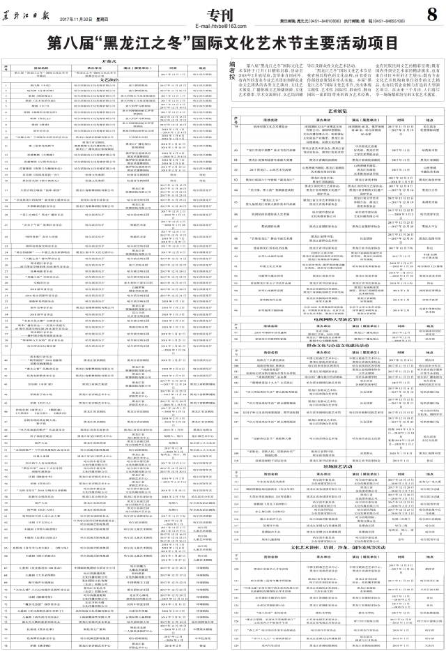 第八届“黑龙江之冬”国际文化艺术节主要活动项目