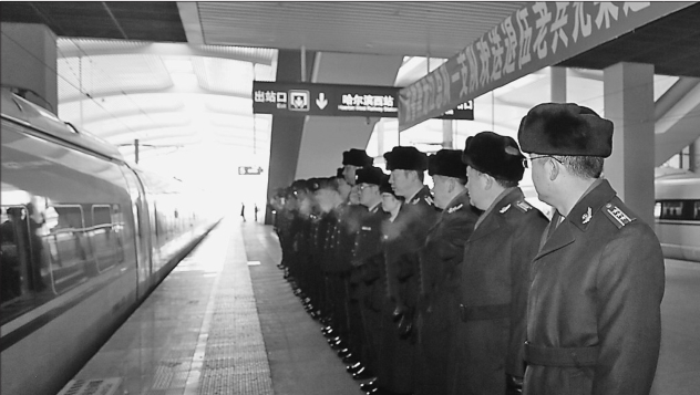1日8时,哈尔滨西站候车室,省武警总队一支队百余名退伍老兵即将踏上列车,离营返乡。 李明磊本报记者闫一菲摄