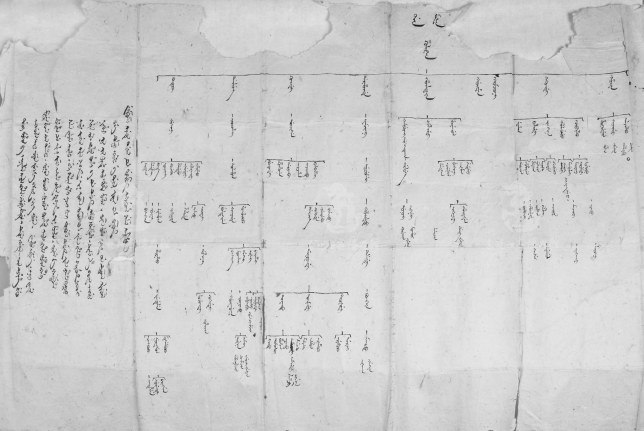 它是一种特殊文献,记载着一个家族繁衍发展情况,是具有平民特色的历史图籍;它又是一份珍贵资料,对于深入研究历史学、民俗学、人口学、社会学和经济学,有着不可替代的独特功能。它就是中国特有的文化遗产——家谱。 家谱又称“族谱”、“宗谱”,在汉族有着悠久的历史,后来,随着各民族的融合,家谱也开始在其他民族中实行起来。黑龙江省博物馆就收藏有几件这样的家谱,而国家一级文物敖拉氏家谱就是其中一件,为1977年内蒙古自治区呼伦贝尔盟鄂温克族自治旗南屯的敖德善捐赠。 敖拉氏家谱质地为毛头纸,全篇用满文书写。它长91厘米、宽63厘米,周边有多处残缺。家谱中记载了达斡尔族敖拉姓氏高祖“呼力日肯”至“昂将何莫”九代世系及迁徙情况。其左侧有序文,叙述东邦德都勒屯长敖拉·呼力日肯原为多金地方人,他率九子于清皇太极时期归附盛京;皇太极赏敖拉·呼力日肯三等男爵,可管辖其族众,又赏赐三个世管佐领,由其子孙世代承袭;公元1697年(清康熙三十六年),敖拉氏族众在多金地方集会,讨论修立族谱,并奏呈理藩院备案。 清初,达斡尔族共18个姓氏,多以所居住地附近的江河名称为姓,而敖拉姓就是因敖拉氏祖先原居住地靠近黑龙江上游的雅克萨西北沃勒迪河而得名。敖拉氏家族世世代代居住在黑龙江两岸,17世纪中叶以后,沙皇俄国侵犯黑龙江流域,敖拉氏和本民族以及鄂伦春、鄂温克等其他少数民族被迫逐渐内迁至嫩江流域。后来,敖拉氏家族的子孙被清政府选调至呼伦贝尔,并编入呼伦贝尔八旗,以加强防守该地区。至此,敖拉氏家族开始为维护祖国领土的完整贡献着自己的一份力量。 (黑龙江省博物馆辛玮蒋萃提供)