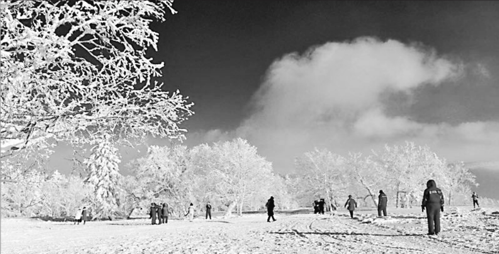 本报讯(记者施虹)近日,记者随“冰天雪地醉美龙江”采风采访团从亚布力滑雪旅游度假区驱车前往中国雪乡,沿线看到雪龙顶、亚雪公路、冰雪画廊已是千枝琼叶,冰雕玉砌,如梦如幻,这条中国冰雪旅游黄金带已经进入最美季节。 亚雪公路是由亚布力滑雪旅游度假区开往中国雪乡的唯一一条旅游公路,全长82公里,这里是龙江冰雪文化旅游中心线,将亚布力滑雪场、雪龙顶、冰雪画廊、雪乡连成了一条最具东北特色的黄金旅游带,堪称东北最美公路。 冰雪画廊就坐落于这条最美公路的海拔之最1370米处。这里堪称一步一景,一景一奇,风光如画。雪山、雾凇、白云,天地浑然一色,一草一木,一枝一叶都凝聚着洁白无瑕的晶体,如披银叠叠,似挂珠串串,山峰鼓荡,晶莹耀眼,放眼望去一片白雪皑皑,好似人间仙境。 雪龙顶地处“冰雪画廊”之上,位于亚布力、雪乡、雪谷、凤凰山四个国家级风景名胜区的结合区域,这里是我省近年倾力规划、设计,重点打造的原生态冰雪旅游极品,游人乘雪地摩托可直达山中部的小龙岭嬉雪区,路旁结满了晶莹洁白的树挂,这些树挂仿佛经过了能工巧匠的精心雕刻,在阳光的照射下璀璨夺目,金光迸射,千姿百态,把人们带入如诗如画的仙境。 亚雪公路“十里冰雪画廊”景观带。 本报记者邵国良摄