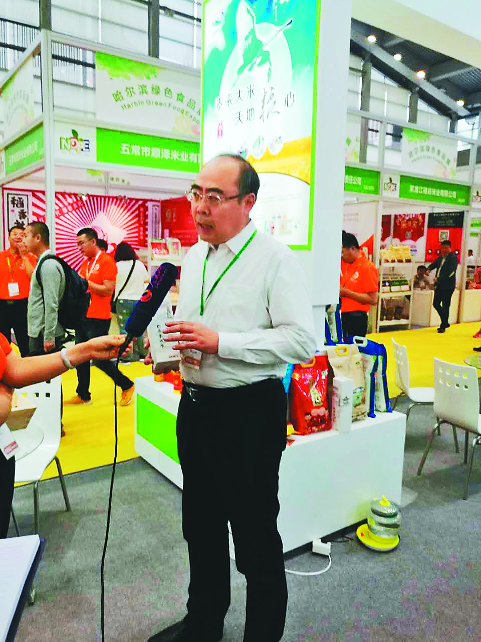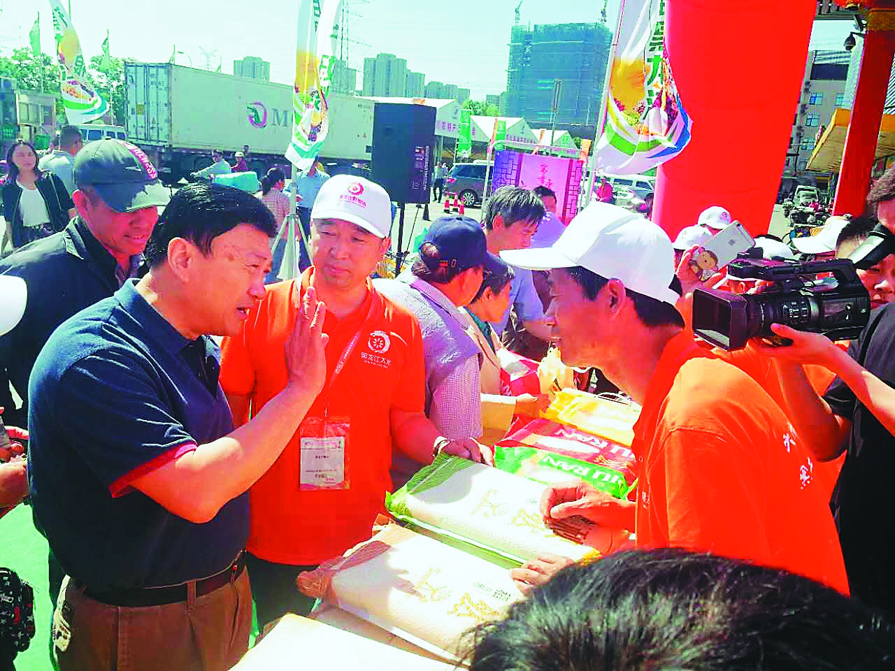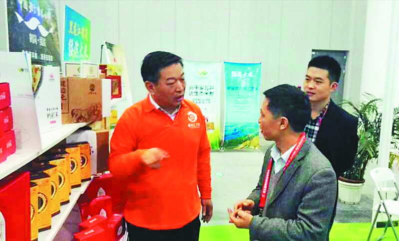 泰来县委书记李岩松在深圳展馆推介泰来大米。
