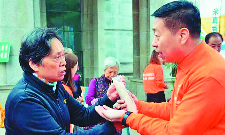 省粮食局副局长王乃巨在地推活动现场召开临时会议。