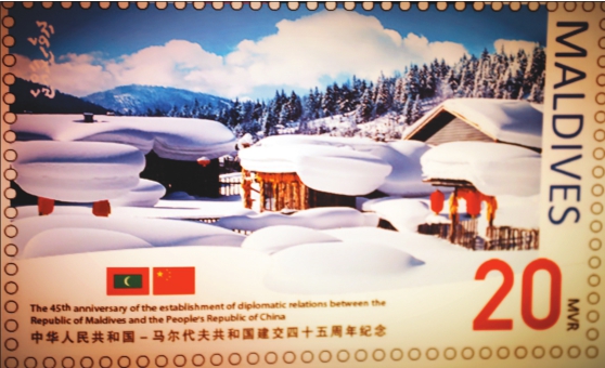 本报讯(赵冬梅孙廷义记者赵辉李晶琳马一梅)由中国邮政发行的《美丽中国》雪乡邮票近日入选“中国-马尔代夫建交45周年”纪念邮票,“中国雪乡”再一次向世界展示风采。 为纪念中国与马尔代夫建交45周年,马尔代夫邮政发行纪念邮票一套共6枚,图案分别为马尔代夫中马友谊大桥、中国福建平潭海峡公铁两用大桥、马尔代夫著名足球运动员阿什法克、中国著名女子乒乓球运动员丁宁和刘诗雯、马尔代夫传统风格民居以及中国黑龙江雪乡风光。 这枚“中国黑龙江雪乡风光”邮票,选自此前中国邮政发行的《美丽中国—雪乡》套票中的一枚,邮资为40分,这也是首枚包含黑龙江元素入选《美丽中国》的邮票。这枚雪乡邮票不仅展示了雪乡的奇美,还成为了和平的使者,雪乡也由“中国名片”成功升级为“世界名片”。 本报记者赵辉马一梅摄
