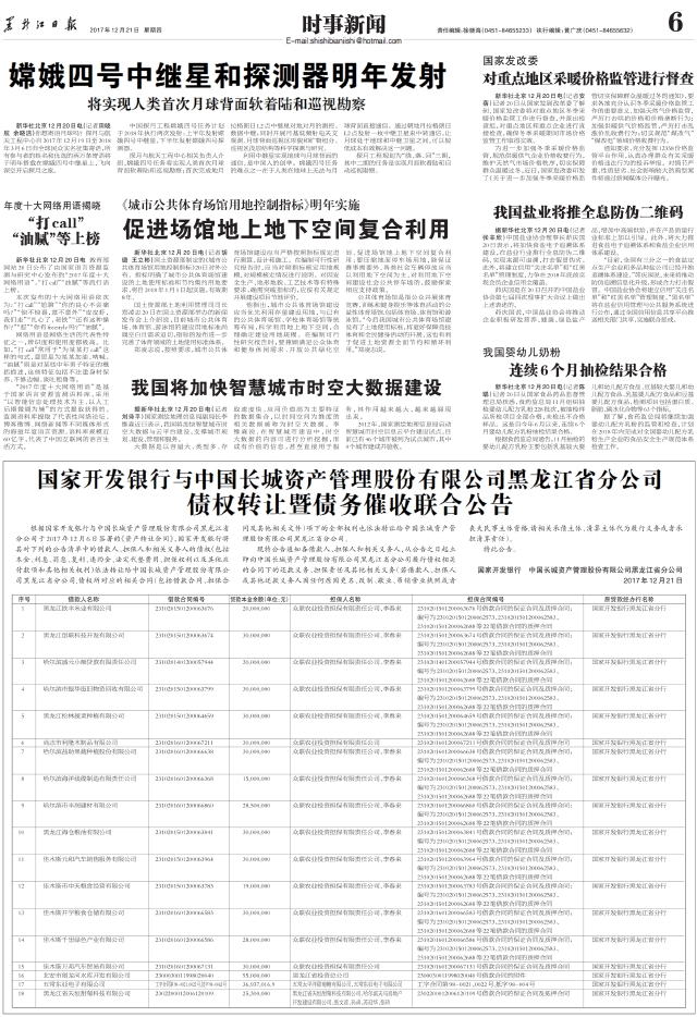 国家开发银行与中国长城资产管理股份有限公司黑龙江省分公司债权转让暨债务催收联合公告