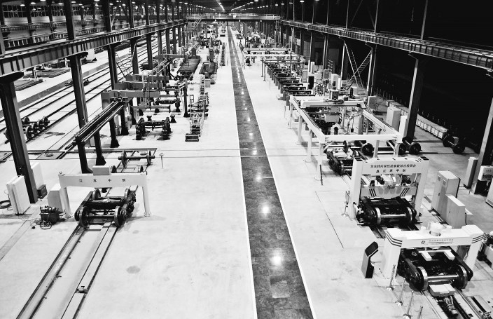 转向架车间柔性组装、智能检测生产线。