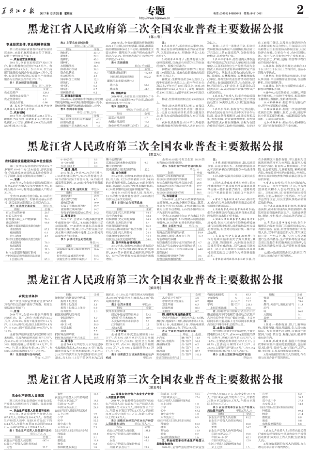 黑龙江省人民政府第三次全国农业普查主要数据公报