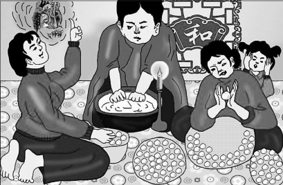 东北人制作粘豆包。