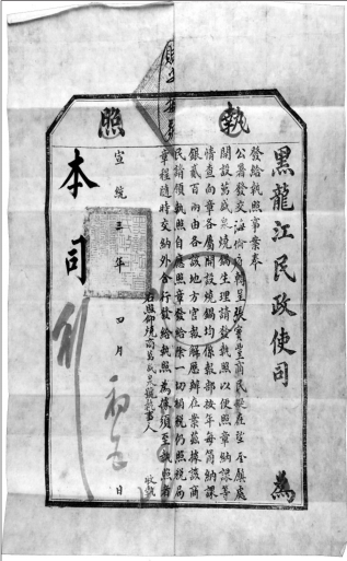 □孔维震 这份烧锅执照形成于宣统三年(1911年)四月初五日,由黑龙江民政使司发给“拟在望奎镇处开设万盛泉烧锅”商民张宝丰的。此执照为宣纸油印而成,在印刷字体行间留有空白,为烧锅开设所在的署地名、人名、地点以及商号名称填写处。此执照大约150字左右,用简练的语言写明烧锅开设地政府与烧锅商应当遵守的义务,并清楚地写明开设烧锅,捐税由地方官征收上缴等明确职责,执照结尾有满汉合璧“黑龙江省民政司印”戳记。 烧锅指北方用锅蒸谷、杂粮,承取蒸馏的酿酒生产技术。在清代各个时期酿酒政策上是不同的,清代前中期因担心酿酒耗费粮食过多,政府一直限制、禁止酿酒。迄至晚清,因中央和地方政府财政窘绌、军饷筹措异常艰难,而陆续开酒曲酿造之禁,并公开征税。 同治三年(1864年)之前,黑龙江将军辖区禁开烧锅,对查出私开烧锅者予以严惩,并销毁烧酒器具。同治三年(1864年)呼兰厅佃民王永庆、王元成等呈恳试办烧锅,“藉消粮石,以拯民困,而裕国课”。黑龙江将军衙门报经户部,于次年批准试办3年,每筒按年纳课银100两,以后再行按筒酌中定额。而此执照中明确写明,“按年每筒纳课银贰百两”,通过这份烧锅执照,可以看出烧锅税的收缴不是一成不变的,而是逐渐改革变化的。主要原因则在于晚清酒税的开征及变化对民生问题的影响基本是正面的、积极的,一方面基于对酒税的开征及税率富于灵活变动性的经常调节,民间市场的粮食供给没有受到太大的影响,一方面并未影响甚至壮大了民间传统酒业自身的发展势头。同时,酒税开征可以视为近代工商税发展的先行与试验,酒税税制的不断进化,为政府制订其它各业财政政策提供了重要的参考依据,从一定程度而言推动了晚清的税制变革进程。黑龙江对烧商征收出锅税,试办一年即收酒税银157000余两,较之以前才收制钱9000多吊的旧例,成绩显著,巡抚周树模奏请奖励有功人员。地方政府是烧锅税的最大受益者,清政府的财政收入因之也大为增加。 在清代,虽然烧酒制度不断变化,时严时弛,但在晚清之前,禁酒一向执行较为严格。晚清时期,禁酒制度明显发生了较大的松动,最后完全放开,这既是晚清财政危机日渐加重的明确体现,也从一个侧面反映了在晚清酿酒业迅速发展之下,酒税之于晚清财政收入的作用已不可低估。这份执照正是在此背景下对税制增收变化的有利佐证,而且保存完整,实属难得,是一件极为珍贵的档案史料。