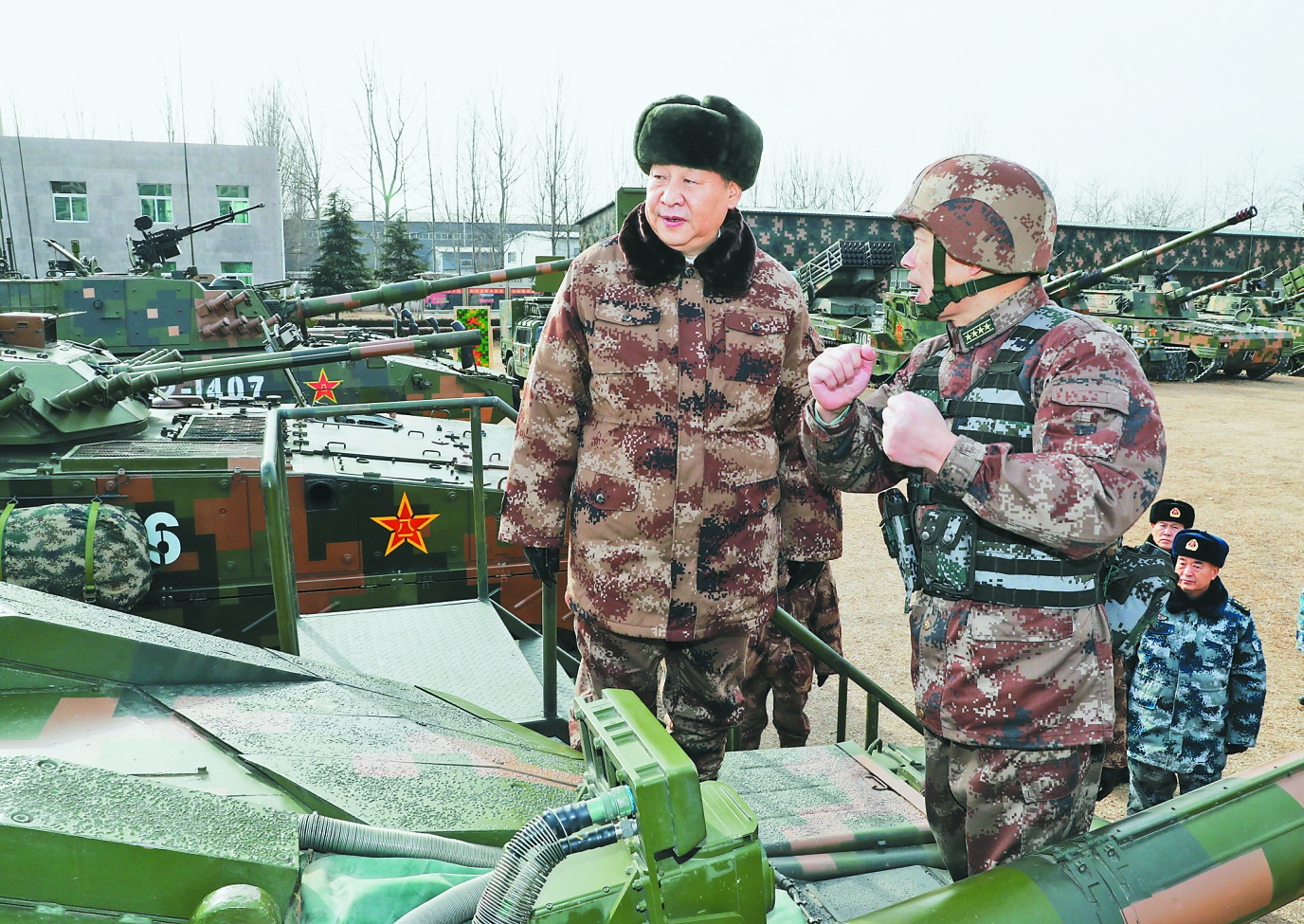 习近平登上99A坦克,详细了解装备战技性能。 新华社记者李刚摄