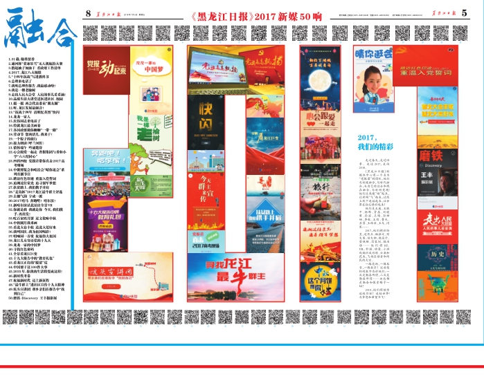 本报讯(记者王巍)“要适应分众化、差异化传播趋势,加快构建舆论引导新格局。要推动融合发展,主动借助新媒体传播优势。”2017年,《黑龙江日报》新媒体认真贯彻落实习近平总书记对新闻舆论工作的重要指示精神,大力探索媒体深度融合之路,紧紧围绕党的十九大、省第十二次党代会和省委十二届二次全会等重大主题,唱响主旋律,全年推出新媒作品396款,真正实现了让党报“动”起来。 2017,媒体迈向深度融合。龙报人奋力前行,运用新技术,借助新平台,创新表达方式,VR、H5、直播、大数据、人工智能……多种形式传播提升了党报的传播力和影响力。396款新媒产品记录了党报君这一年的足迹,实现报、网、端、刊、博、微“全渠道”覆盖。 2017,重大主题接连不断。党的十九大、全国两会、省第十二次党代会、省委十二届二次全会……以传统党报为依托,以新兴媒体为载体,《黑龙江日报》新媒体围绕重大主题全力出击,《总理来电话了》《听,龙江发展最强音》《龙龙一家的中国梦》《十九大报告中的教育礼包》……一批“现象级”产品横空出世。 2017,策划报道精彩纷呈。互动游戏《中秋圆月我来画》火爆朋友圈,视频直播《看北大仓丰收送北大荒好米》获奖者覆盖全国25省,“最牛群主”成为龙江人微信圈里的“热词”,十九大精神“炕头宣讲团”帮乡亲们在报告中“找自己”……注入新动能,提升传播力,我们一直在努力。 2017,中国媒体深度融合30强、全国党媒十九大融合报道TOP10、中国报业十九大融合传播作品十佳创新奖、全国省级党报官方账号社交传播力榜第八位、全国两会议题指数排名前三……《黑龙江日报》新媒体收获满满。 今天,本报推出“《黑龙江日报》2017新媒50响”,为您呈现多姿多彩的媒体融合之路。