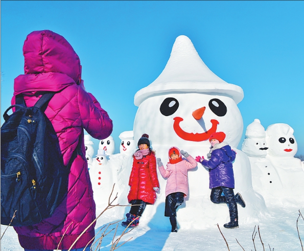 当日,2018个雪人雕塑在哈尔滨外滩赏冰乐雪园的奇趣雪人谷园区内展出,吸引了众多游人。 本报记者高明摄