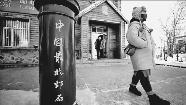 1月29日,游客在最北邮局前游览。 新华社记者王凯摄