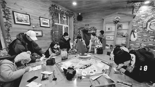 1月29日,游客在最北邮局里为亲友写明信片。 新华社记者王凯摄