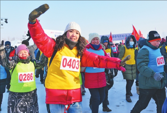 近日,由省体育局、省体育总会主办的2017-2018年赏冰乐雪系列活动之冰雪迷你马拉松,在哈尔滨市道里区群力音乐长廊鸣枪开跑,来自我省各地的1000名长跑爱好者参加了此次比赛。运动员们不惧严寒,挑战自我,跑出了气势,跑出了黑龙江独有的冬季全民健身胜景。 本报记者苏强摄