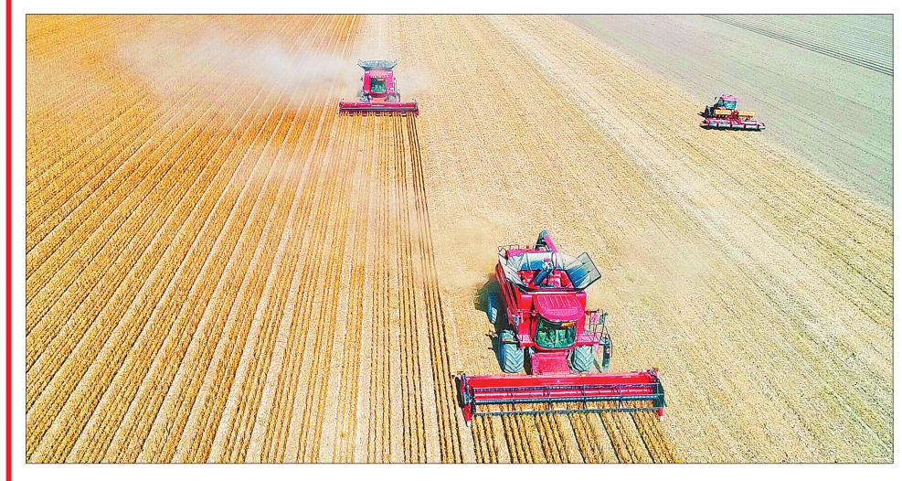 黑龙江农业生产现代化水平领先全国。这是垦区大型农机联合秋收作业的壮观场景。 本报记者陈宝林摄