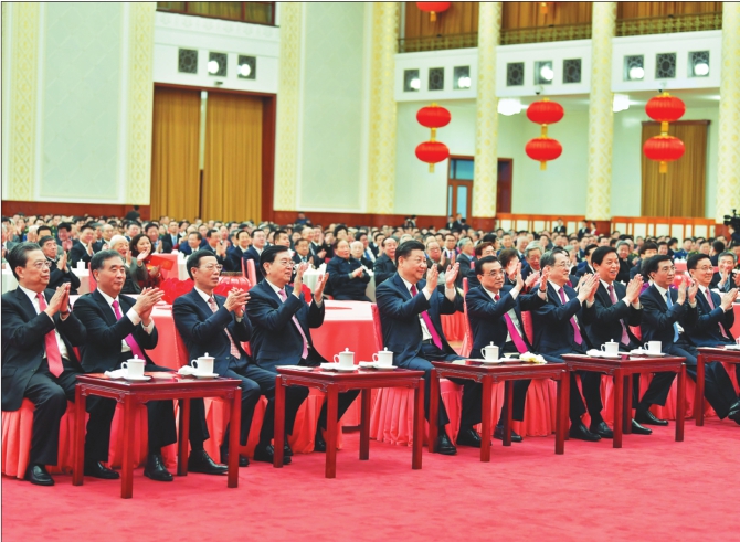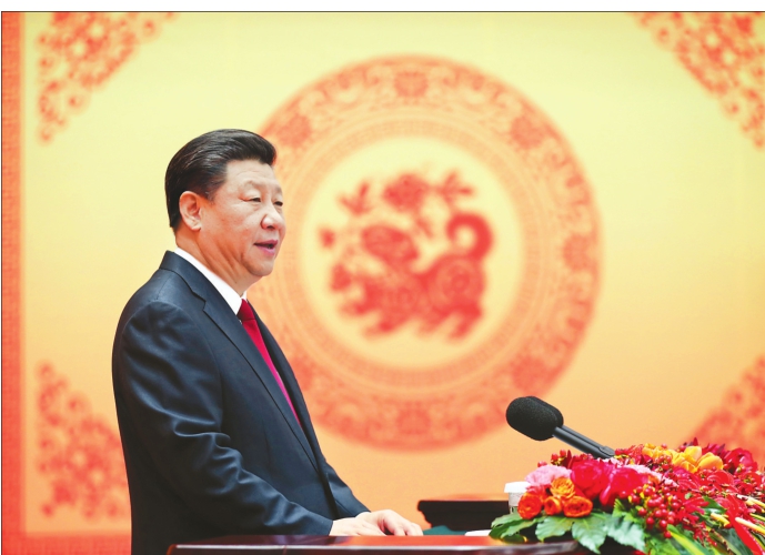 2月14日,中共中央、国务院在北京人民大会堂举行2018年春节团拜会。中共中央总书记、国家主席、中央军委主席习近平发表重要讲话。新华社记者鞠鹏摄