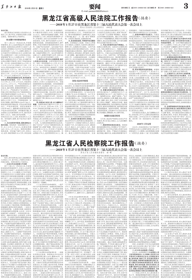 黑龙江省人民检察院工作报告(摘要)
