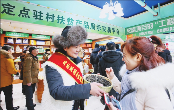 驻村“第一书记”推广地产绿色食品。 本报记者邱成摄