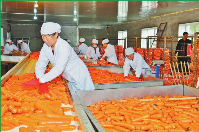 四方台区太保镇昊天蔬菜农民种植专业合作社在加工胡萝卜。