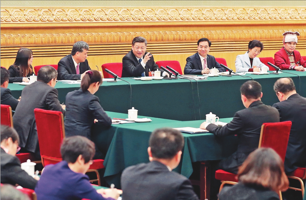 3月7日,中共中央总书记、国家主席、中央军委主席习近平参加十三届全国人大一次会议广东代表团的审议。新华社发