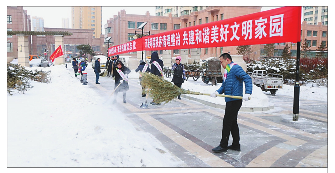 日前,松北区党员干部、文明单位和社区志愿者前往松北区众合城小区,联合社区、物业公司和小区居民群众共200余人,开展义务清冰雪和小区环境清理整治活动。这也标志着松北区“春季环境清理整治、洁净美丽家园行动”主题活动正式启动。据了解,该行动大力净化城市环境,规范小区设施,将持续至5月底。 尹玉堂本报记者李爱民摄