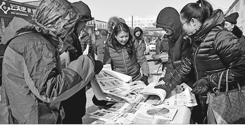 日前,省农委下发《2018年黑龙江省农资打假专项治理行动实施方案》,并组织人员赴绥化市举行春季农资打假专项治理行动,拉开全省农资打假的大幕。这是在绥化市北林区农资大市场放心农资产品展示台前,工作人员向广大农民发放资料、宣传推介放心农资。 严璐璐本报记者王振良摄