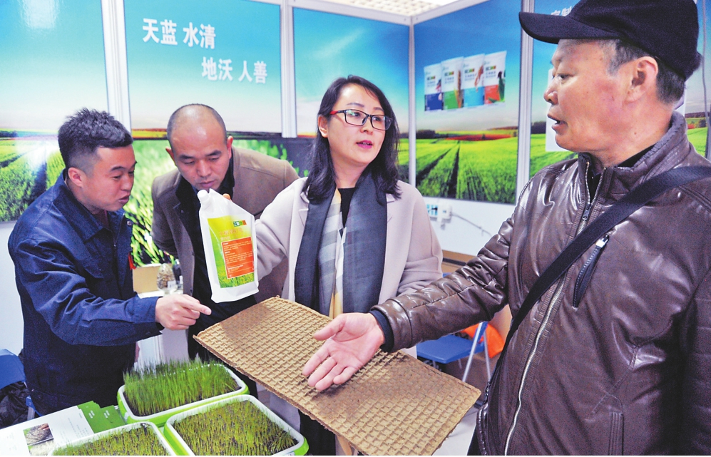来自全省各地市县农业主管部门、乡镇村负责人、农民和农民专业合作社代表,省内外大专院校、科研单位和秸秆产业企业参加了活动。在来自北京的一家公司展台前,人们在了解利用秸秆生产的“无土栽培基质”及各种配套肥料产品。
