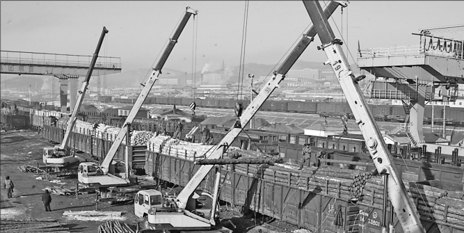 □文/摄吕永超本报记者杜怀宇 春日里的绥芬河,天高云淡微风拂面,在绥芬河铁路口岸换装现场依然是一派繁忙,塔吊有序旋转,货运机车往来穿梭,货场换装工人们为保证口岸国际货物快进快出都在辛勤工作着。 4月8日9时,记者来到铁路北站换装现场。当天上午换装的有进口木材削片。高高的龙门吊在头顶穿梭,像是一片移动的钢铁森林,巨大的铁爪将俄罗斯火车上的木材削片抓起,吊送到中国货运列车上。这些削片将从绥芬河再次出发,发往国内的木材加工厂,制成压缩板,变成桌面、柜门等进入千家万户。 龙门吊有10多米高。沿着陡峭的台阶登上龙门吊顶,上面的风更大了,感觉随时都能把人刮下去。站在平台上,站场上忙碌的工人身影和来往的车辆尽收眼底。 在龙门吊操作室,司机赵师傅告诉记者,他从早上8时接班就开始换装这批削片,一共有24节车厢,已经换装了一半左右,全部换装完至少还需要三个小时。赵师傅在换装线上工作了十多年,和这里的每一台龙门吊都熟悉得像是老朋友一样,操作这庞大的机械,游刃有余。赵师傅告诉记者,龙门吊司机需要持特种设备作业人员证上岗,专业技术要求比较严格,而这些技术他都是跟着老师傅学的。坐在十几米的驾驶室里吊装货物一般有地面指挥人员配合,驾驶室更像是一个铁箱子,为了能够听清地面指挥,冬天也基本得开着窗户,整个驾驶室成了“电冰箱”。夏天这看着“高高在上”的驾驶室更是难熬,铁箱子在太阳的炙烤下温度能达到四五十度,箱子里面又成了“微波炉”。 比起在操作室里的龙门吊司机,车厢里辅助换装的工人,需要根据换装任务要求,随时工作。他们的工作环境,就更加艰苦了。他们工作时,冬天要穿着厚重的军大衣、大棉裤,头戴棉帽子,全副武装。由于木材削片水分较大,贴近车厢底部和边缘的部分会产生冻结,机械无法作业。工人们就要爬进俄罗斯火车车厢,将冻结的木材削片用镐刨下来,再用铁锹装到中国列车上。如此寒冷的天气,穿着笨重的棉衣,在三米多高的车厢间爬上爬下,每次都需要耗费很大的体力。像这样连续工作五六个小时,所付出的艰苦可想而知。夏天时候同样不轻松,躲在树荫底下都直冒汗,就更不用说顶着大太阳干活。煤炭、矿粉是换装任务最为艰苦的,遇上点小雨,脚下全都和了泥,有工人开玩笑说,赶上天黑点,不呲牙都不知道有个人。 记者在现场采访不到一个小时,穿越在铁轨之间,在火车上爬上爬下两次,已经觉得很吃力,然而换装现场的工人们每天都要翻越数十节车厢,在集中辛苦地劳作。可以这样说,正是他们的努力,保障了铁路口岸过货量的持续攀升。过去的2017年,绥芬河口岸过货量达到了1136.79万吨,创造了新的历史记录,这里有他们的功劳。 铁路货场原木换装。