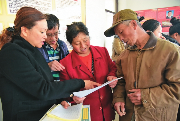 近日,牡丹江市农技推广总站开始发放刚刚填报完成的2018年新一轮测土配方施肥建议卡。共计850份测土配方施肥建议卡,将在一周左右的时间里,全部免费发放到当地农户手中,为今年的农业生产提供技术支撑。这是在阳明区铁岭河镇苇子沟乡村,市农技推广总站的工作人员正在向农民介绍测土配方施肥建议卡的使用方法。 刘鑫本报记者孙昊摄