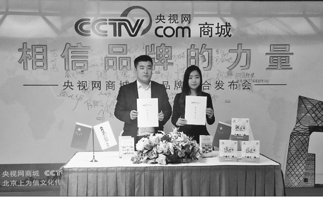 2017年12月,王震(左)代表“北创”与央视网签订“北创一家兴”品牌宣传合同。王海峰摄