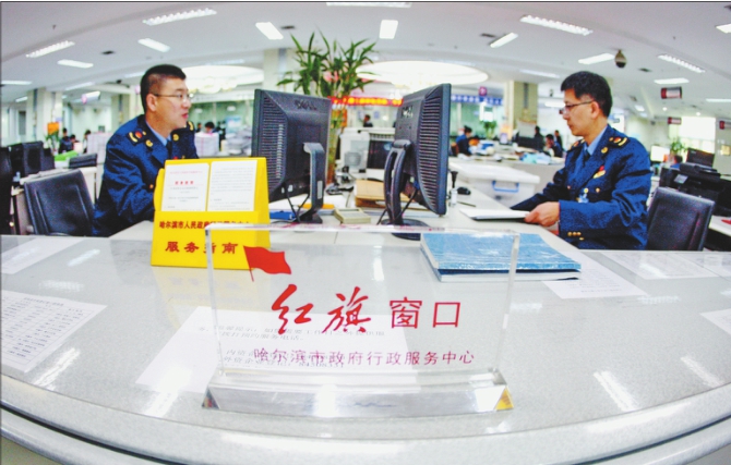 哈尔滨市政府行政服务中心办事窗口。 本报记者苏强摄