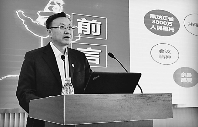 张斌向哈医大二院医务工作者传达全国“两会”精神。