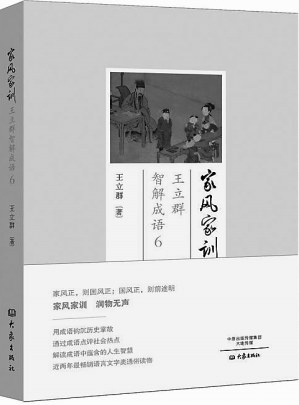 □王立群 中国传统的社会构成是以家庭、家族为单位的。一个家族为了维持本家族的生存、促进本家族的兴旺发达,在世代繁衍的过程中逐步形成了本家族的风气、风尚,这就是家风。家风凝练成文字世代相传,就是家训。家风、家训是一个人精神“初始化”的环境,是一个人精神成长的起点,是对子孙后代处世、治家、立业的谆谆告诫、殷切教诲。从表面上看,家风、家训似乎纯粹是家族内部的规范、约束,实际上,从家训所包含的修身处世、齐家治家、勤俭节约、立德立言等方面的内容来看,这些都是中华文明的基本构成因子,而家国同构是传统中国的基本观念,家庭、家族与国家、天下从来都是紧密联系在一起的,齐家与治国经常被置于同等重要甚或以齐家为前提条件的位置来审视对待的。因此,从这个意义上讲,家风、家训完全具备了超越家庭、家族的意义。 本辑15篇主要是围绕中国古代家训的重点内容来写的,包括如何齐家、勉学、宽厚待人、行善、勤俭养德、立志、交友、自立、自我约束、改过等方面的内容。随着社会的发展,尽管传统的家族社会已经被小家庭取代,但是夫妇、父子、兄弟这些最基本的家庭关系仍是构成家庭的基本要素。俗语云“家和万事兴”,如何教育子女、处理家庭成员之间的关系相当关键,其意义绝不局限在家庭内部。千里之堤,始毁于家之不齐。有好家才能走得远,家之不齐而能国治的,从古至今是没有的。愈是小家庭时代,愈需要提倡良好的家风,虽然古代的大家族的环境消失了,但宽厚待人、积德行善、勤俭节约、胸怀天下、自我约束、敢于担当、勇于改过这些为人处世的基本道理不能消失,不管什么时代,这都是必需的。 “智解成语”系列是解读成语的,但又不是纯粹地解释成语。通过成语来诠释传统文化,在传统文化的继承与发展中解读成语才是其写作的初衷。因此,在行文过程中有时会宕开一笔,详细地阐释成语的来龙去脉,或顺便介绍一点传统文化的知识;有时则将成语直接化用在行文的叙事与议论之中;有时也会提及已经解读过的成语,详略重点稍有差异。一切皆为行文之便,皆为解读之便。