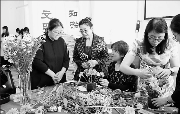 每年5月的第二周为全国职业教育活动周,哈尔滨市职业教育活动周5月8日拉开帷幕。5月9日上午,哈尔滨职业技术学院公共基础教学部组织师生走进哈尔滨南岗区贵新社区,发挥学科优势,开展茶文化、园艺插花知识讲座与技能展演活动。精彩的专题讲座和精湛的技艺展示,让社区居民切身感受到了职业教育服务于生活的独特魅力。 本报记者邱成摄