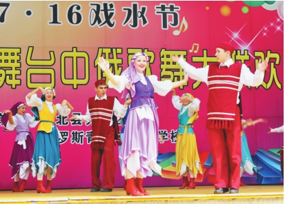 戏水节名山岛大舞台中俄文艺演出现场。