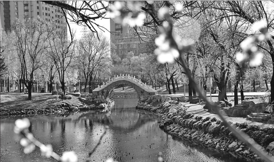 清澈河水潺潺流淌,花草树木错落有致,条条街道宽敞整洁的鹤岗南山景观带。本报记者蒋国红摄