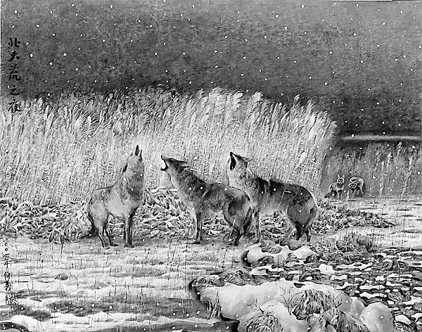 □于德深 就在打死母狼的那天晚上,村子里恐怖极了。公狼不知从什么地方找上门来,蹲在吊着三只小狼的树下,整整嚎了一夜。 说狼有感情,恐怕大多数人都不相信。但上世纪五十年代末的一段往事,改变了我的看法,至今让我难以忘怀。 那是一个初春的早上,我的三位叔伯哥哥看看瓦蓝瓦蓝的天,对我父亲说:“老叔,今儿个天气好,我们哥几个想去东长条刨苞米查。”父亲也抬头看下天,顺口说“:那就去吧!咱是庄户人家,有啥比侍弄地更重要!” “东长条子”是块地,就在屯子东头,距屯子有五六里地远。这块地是土改时工作队分给我们的,成立合作社时我们家依然种着。土质非常好,抓一把能攥出油来,旱涝保收,可谓一块宝地。这地垄很长,从南头刨到北头得一个多小时。刚开始扬锹的时候还风平树静,可当他们从北头再刨回来到地中间时起风了,风拽着衣服“哗哗”响,摇得钻天扬“呜呜”地叫。风仿佛就在树梢上走一样,刮得地上的土都飞了起来,刨查子的锹扬起却落不下。我的叔伯大哥说:“这天气赶上六月天了,像孩子的脸,说变就变,这米查子还咋刨,走歇着吧!”说着他们走进那片杨树林子。杨树圈子中间的一处坟茔旁堆着一堆新土,露出一尺多宽的圆形窟窿。我的叔伯四哥见了,好奇地说:“看看里面有啥没有。”说着他走到洞的跟前,用一只手遮着太阳往里看。这一看不要紧,吓得他一屁股坐在地上——他清楚地看到一只硕大的母狼正躺在那里,给几个小狼崽喂奶。也许是刮大风的缘故,洞里的狼毫无察觉,泰然自若地尽着它做“母亲”的责任。这位哥哥连滚带爬地回到另外两个叔伯哥哥跟前,指着那洞上气不接下气地说:“狼!洞里有狼!”我的另外两位叔伯哥哥听到洞里有狼,顿时头发茬子都竖了起来。在上世纪五六十年代的北大荒,狼真的很野。 一阵手忙脚乱之后,他们终于冷静下来。最后还是我的叔伯三哥出了个主意:“我回去组织人力,带着家伙什儿,你们两个留在这儿远远地监视着狼。”故事叙述到这里,我真的为那只母狼捏了一把汗:她只是一个“母亲”,正抚养着她的几个“孩子”,如果她真的被抓了或者被打死了,她的几个“孩子”怎么办?然而,那时,狼跟人之间,是水火不相容的,双方见面,不是你死,就是我活,而这只狼同样没能逃脱它的厄运。几十分钟后,它被人们抬着的两扇场院大门死死地扣在洞里,尽管它疯狂地挣扎,又怎么能躲得过几十号人的长矛?它被钩杆铁齿三下五除二地扎死在洞里,三个小狼崽也被捅死了。 那天晚上,全村所有的孩子平生第一次尝到狼肉的“滋味”,而我却没有一点胃口,我想,这也是一条生命啊! 写到这里,故事还没有结束。就在打死母狼的那天晚上,村子里恐怖极了。公狼不知从什么地方找上门来,蹲在吊着三只小狼的树下,整整嚎了一夜。吓得家家闭户,连灯也不敢点,几乎大气不敢出,生怕公狼窜进屋里。就这样一连几个晚上,每到日头落山的时候,公狼总是“光临”屯里,坐在那棵树下“嗷嗷”地“哭”着。那些天,连晚上闹夜的小孩也不敢哭了,一说狼来了,吓得立即把头紧紧地贴在母亲的怀里。 公狼折腾了一阵子后,走了!至于它流浪到哪里,是否又找到新的“伴侣”,是死是活,谁也不知道。但有一点至今还让我记忆犹深,那就是:有人看到公狼临走的那天早晨,把三只小狼崽分别用嘴和脊背带走了。带到哪里或者说埋在哪里,也无从考证,只是狼的这种“夫妻”间的情感,“父子”间的情感,让人久久不能忘怀。