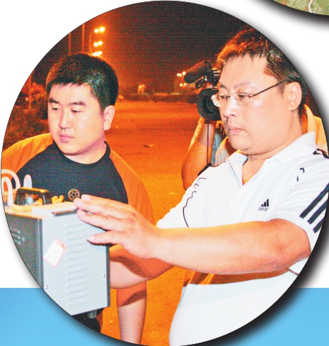 ←哈尔滨市监测中心站工作人员夜间对污染企业周围空气进行采样。李厚君摄