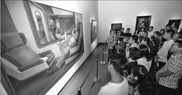 本报讯(王丽娜记者李健)6日,由哈尔滨市青年联合会主办,哈尔滨市青年画院、市青联文化艺术体育界别承办的哈尔滨市青联委员“观《中华意蕴》中国油画大师展、听大师讲大师艺术作品”活动在禹舜美术馆举办。本次《中华意蕴》油画展(哈尔滨站)展期将持续至6月10日,免费向市民开放。 据介绍,《中华意蕴》中国油画大师展是建国69年以来,我省举办的最高级别的大师油画展,参展画家以中国国家画院油画院研究员为主体,共60余位,共展出作品约150幅,是首次整体全面地展示当代中国油画取得的最高艺术成就的展览。 据了解,此次观展活动是今年“青年艺术论坛”重磅打造的系列活动之一。活动中,委员们参观了《中华意蕴》画展,黑龙江省油画协会主席、哈尔滨师范大学美术学院教授、博士生导师田卫平,全程对大师们的艺术作品进行深入浅出的公益讲解。 观众边欣赏油画作品边聆听专业讲解。刘洋洋本报记者李健摄