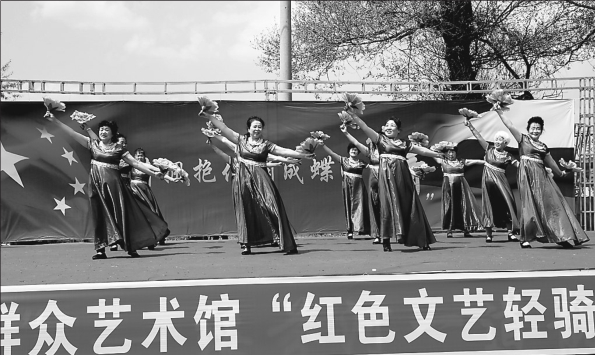 为践行文艺工作者坚持写人民、演人民的责任使命,满足人民群众日益增长的文化生活需要,由绥芬河市文体广新局主办、市群众艺术馆承办的“红色文艺轻骑兵”进社区文艺演出近日在绥芬河市大白楼广场拉开帷幕,演出活动助力了中俄边民大集的文化氛围。 参加演出的有绥芬河市老年大学、绥芬河镇老年大学、阜宁镇文化站、绥芬河镇社区舞蹈队、体育舞蹈协会、歌友会和文化志愿者队伍等。演员们尽情歌舞,展示风采,传播了喜悦心情,丰富了社区文化生活。活动的开展进一步增进了和谐的社区人际关系,让优雅文明的城市人文环境、健康快乐的生活方式融入了广大市民的生活,扮靓了魅力绥芬河的社区文化生活。 张江本报记者杜怀宇摄影报道