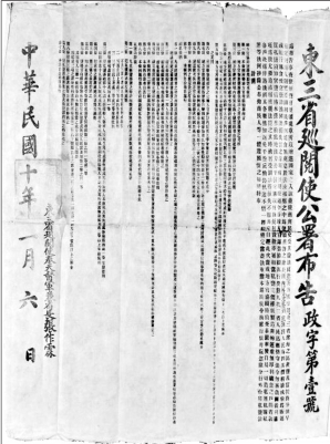 □田嘉伟 没有网络、电视的年代,布告是政府宣布重大决策,要求民众共同遵守进行广而告之的重要手段。黑龙江省档案馆保存一张1920年(民国十年)东北巡阅使张作霖发布的关于盐务缉私的政字第一号布告,转发北洋政府于1914年颁布的《私盐治罪法》、《缉私条例》和《地方官协助盐务奖励惩戒条例》,侧面反映了盐税对当时政府的重要程度。 黑龙江地区自唐属渤海国到清代前期,居民以食土盐为主,所食土盐主要产于黑龙江肇州和内蒙古卓尔博特(今呼伦贝尔),因土盐味苦质劣,到清光绪年间,从陆路大量调入奉盐(辽宁所产海盐),居民改食海盐,而吉林省历来为奉盐销区,三省盐务联系日渐密切。光绪三十四年(1908),清政府在辽宁成立东三省盐务总局,从此,东北盐政合为一体。 1913年(民国二年)4月,袁世凯以盐税收入作为担保,同五国银行团签订善后大借款。为加强中央对地方盐税的控制,北洋政府在英国人丁恩的主持下实施了“整顿盐务、改革盐政、集权中央”的盐务改革。北洋政府将清代以来由地方把持的盐政管理收归中央,由财政部直属盐务署负责盐场管理、食盐运输、地方盐款保管和审计及盐务缉私等盐政管理。取消了清代以来名目繁多的盐税附加,实行均税,全国分为南北二区,东北地区盐税每百斤定为2元。 为打击私盐贩卖,1914年(民国三年)《私盐治罪法》、《缉私条例》和《地方官协助盐务奖励惩戒条例》等盐务缉私法规陆续颁布,明确界定了何为私盐,详细规定了对贩卖私盐人员的量刑标准。规定了缉私营队的职权范围、缉获人犯和私盐的处置办法,要求地方官对于盐务应负协助之责,受盐运使考核。 北洋政府的盐务改革,初期在东北三省得到了较好执行。1915年(民国四年),时任黑龙江省省长的朱庆澜在对龙江道尹公署的饬令中要求:“场运巡缉私盐,要赖地方官不分区域协力维护,遇有协助盐务不力知事,立予参劾。”在地方政府的配合下,黑龙江省官盐销售大增。据统计,1918年(民国七年)黑龙江省销售官盐4500余石,较上一年增长50%,以致当年黑龙江省很多县出现官盐库存不足的情况。 1918年(民国十年)奉系首领张作霖被任命为东三省巡阅使后,逐步掌握了东三省的军政大权,为增强自身实力,奉系军阀肆意截留盐税、加征盐附加税,导致中央对东北的盐税收入失去了有效控制,北洋政府的盐务改革在东北受到了巨大挫折。