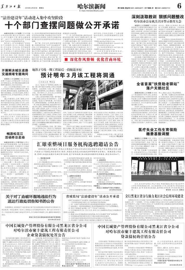 中国长城资产管理股份有限公司黑龙江省分公司对哈尔滨市聚丰建筑工程有限责任公司企业贷款债权处置公告