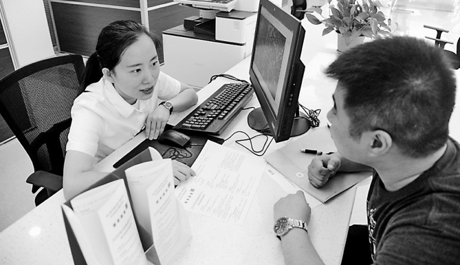 城乡规划控制线图受理窗口工作人员接待办事群众。 本报记者郭俊峰摄