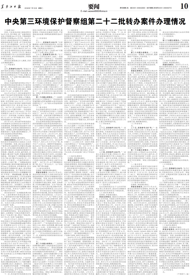 中央第三环境保护督察组第二十二批转办案件办理情况