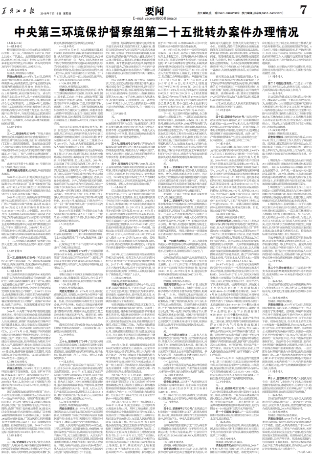 中央第三环境保护督察组第二十五批转办案件办理情况