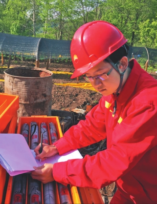 王大鹏在记录岩芯的信息。图片由受访者提供