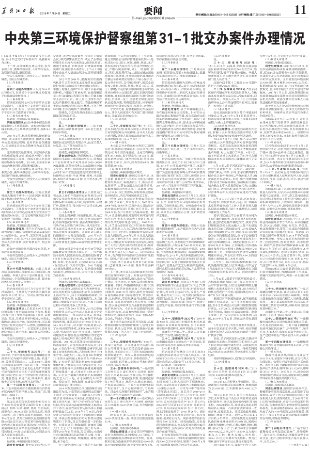 中央第三环境保护督察组第31-1批交办案件办理情况