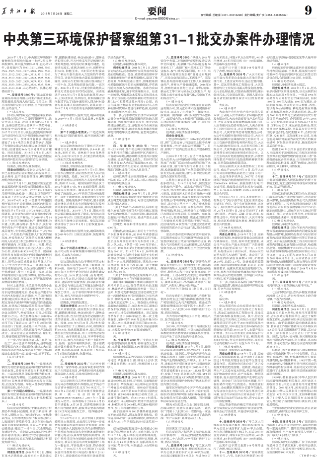 中央第三环境保护督察组第31-1批交办案件办理情况