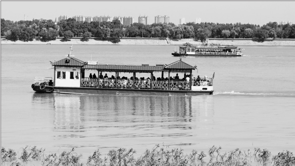 近几日,随着降水增多,松花江哈尔滨段水位明显上涨,江面恢复了昔日的宽阔,景色很是壮观。许多市民和游客乘游船观赏江上美景。 本报记者苏强陈贺摄
